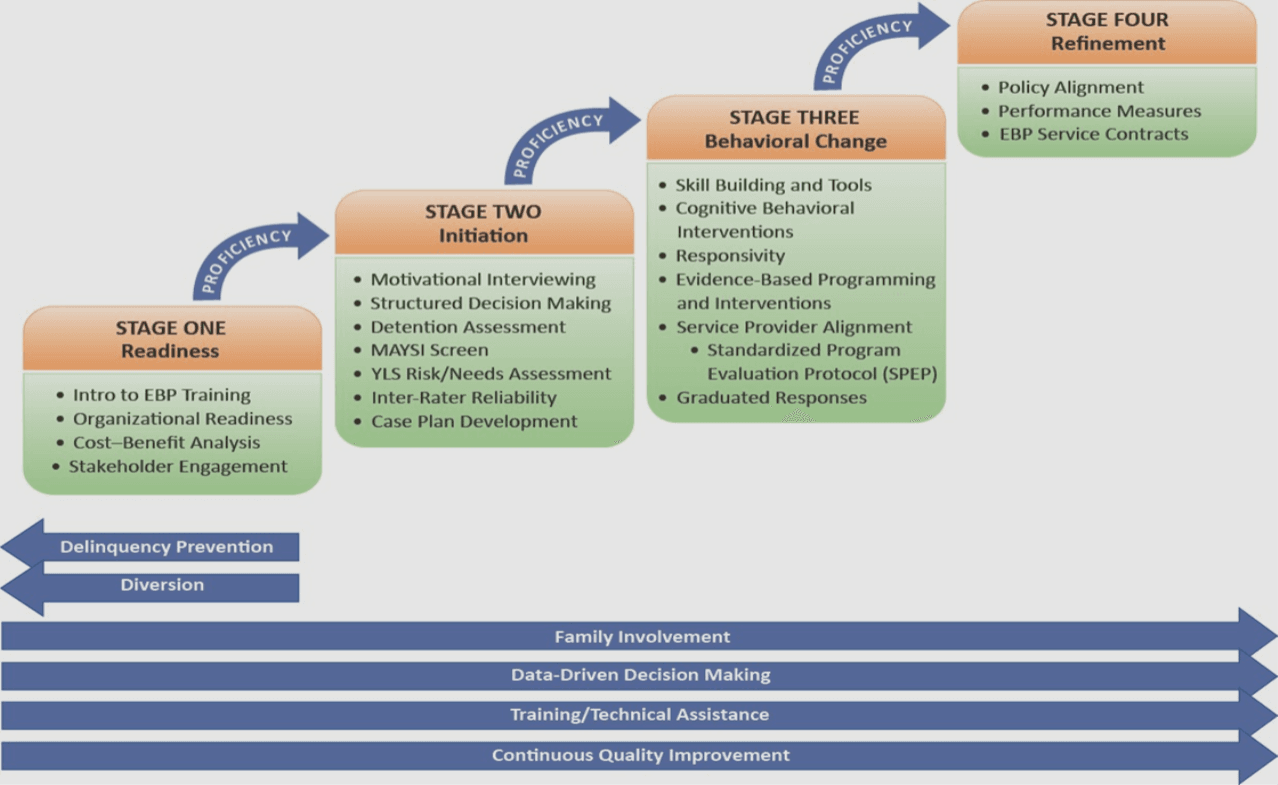 - employing evidence-based practices with fidelity at every stage of the juvenile justice process;